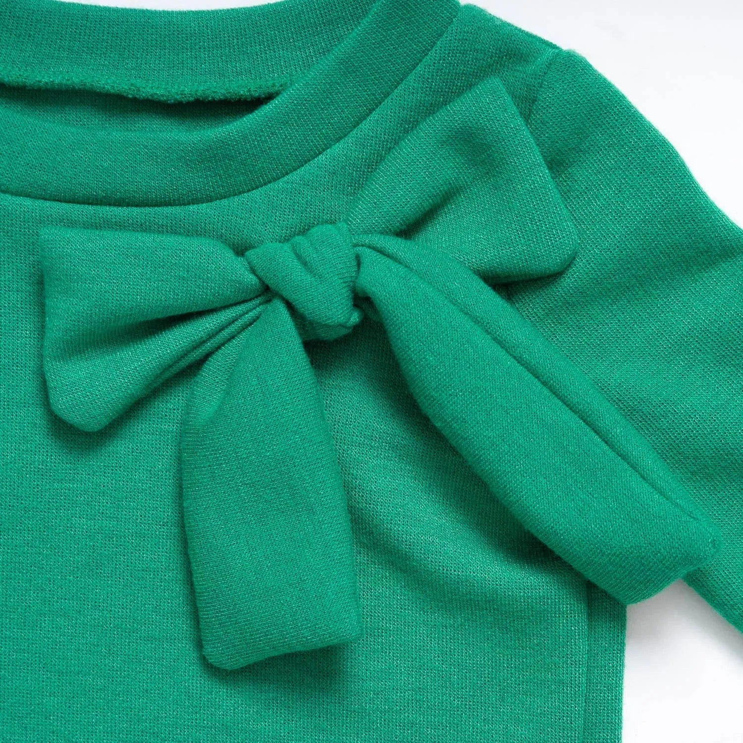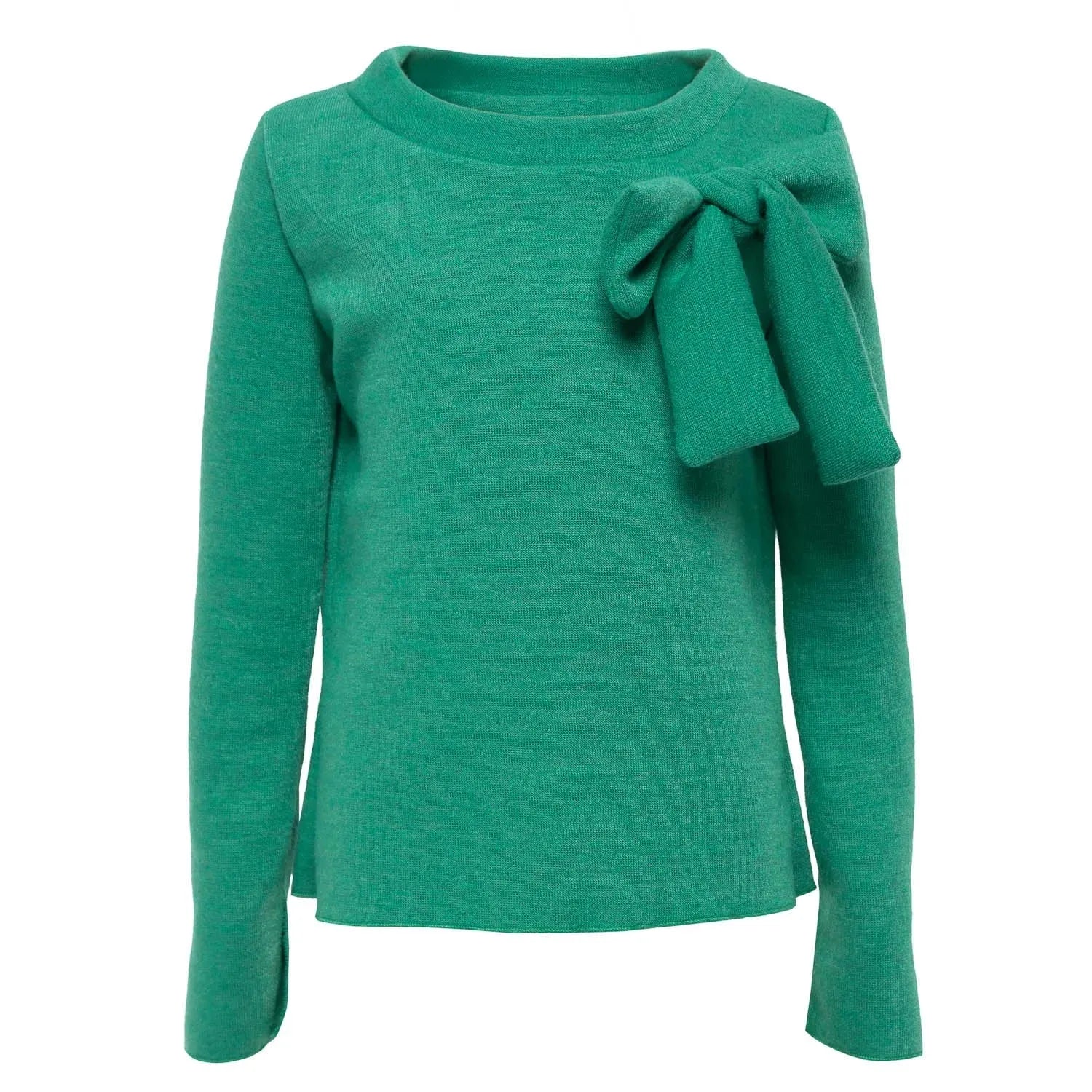 Soft round neck jumper with oversized bow detailing. Split cuff detail.